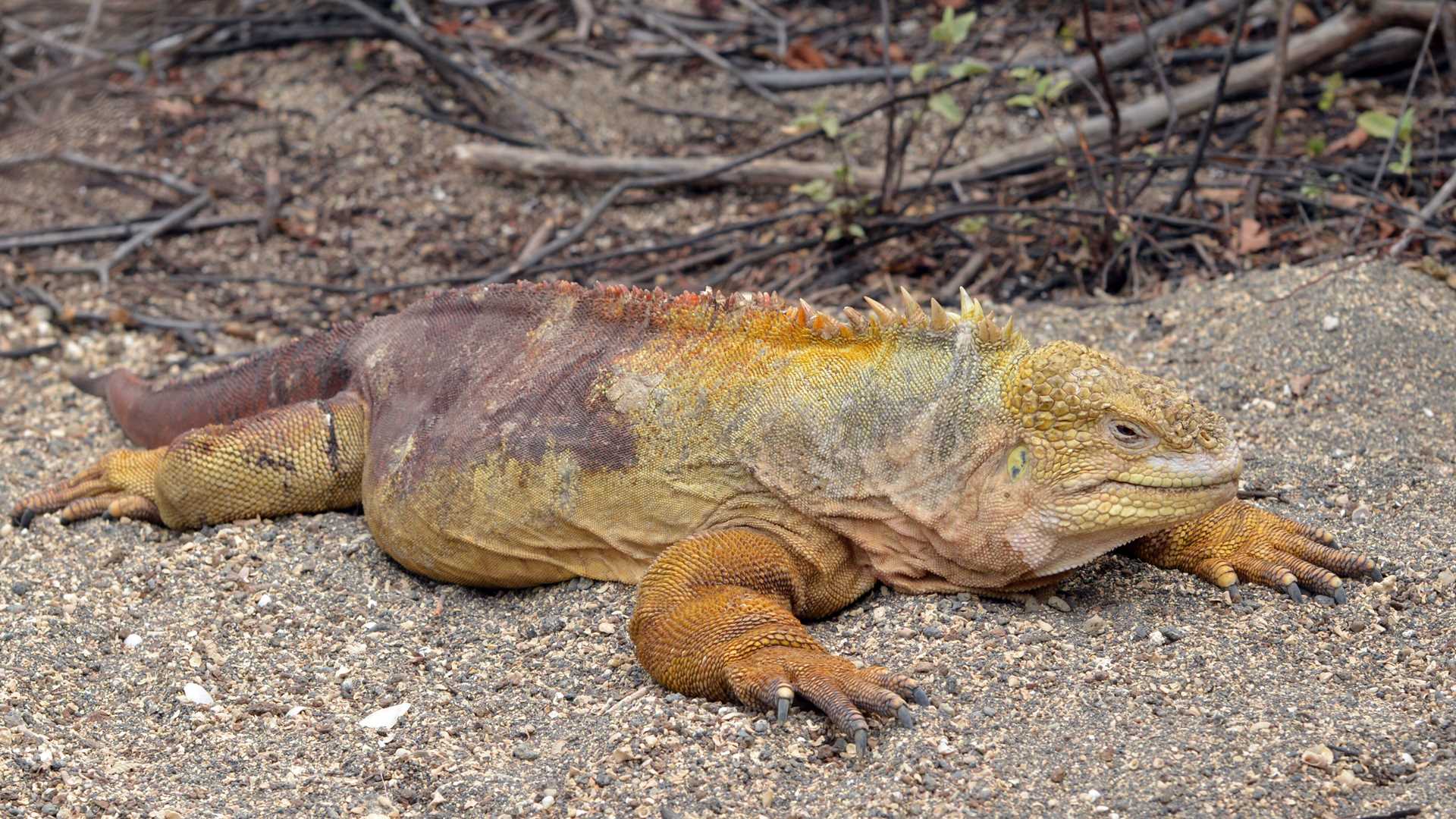 After breakfast, we boarded our Zodiacs and headed towards the Urbina landing beach. We walked inland, spotting the first land iguanas basking along the trail. Many of them looked at us indifferently, while others simply walked through the bushes looking for food. Near the end of the trail, we came across some tortoises that probably came down from the top of the Alcedo Volcano to nest. Just before noon, National Geographic Endeavour II began the voyage north toward Tagus Cove. The cove was one of the most popular sites for visitors of yesteryear, including pirates and buccaneers who used the site as a hideout after attacking and looting the Spanish galleons.