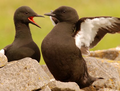 At the island of Vigur a family has been fishing and farming for centuries and this also includes collecting eider down. The island is now a private nature sanctuary and all birds are extremely tame and very approachable, which of course is very attractive for photographers. Of course, the tame puffins were the highlight, but also black guillemots, aggressive and fearless arctic terns defending their territories as people came to close to their nests. Noisy redshanks and oystercatchers came over our heads watching our movements closely. Both puffins and black guillemots were arriving with fish, a good sign that chicks have hatched in the nests. Plenty of female eider ducks were swimming along the coastline with their ducklings.