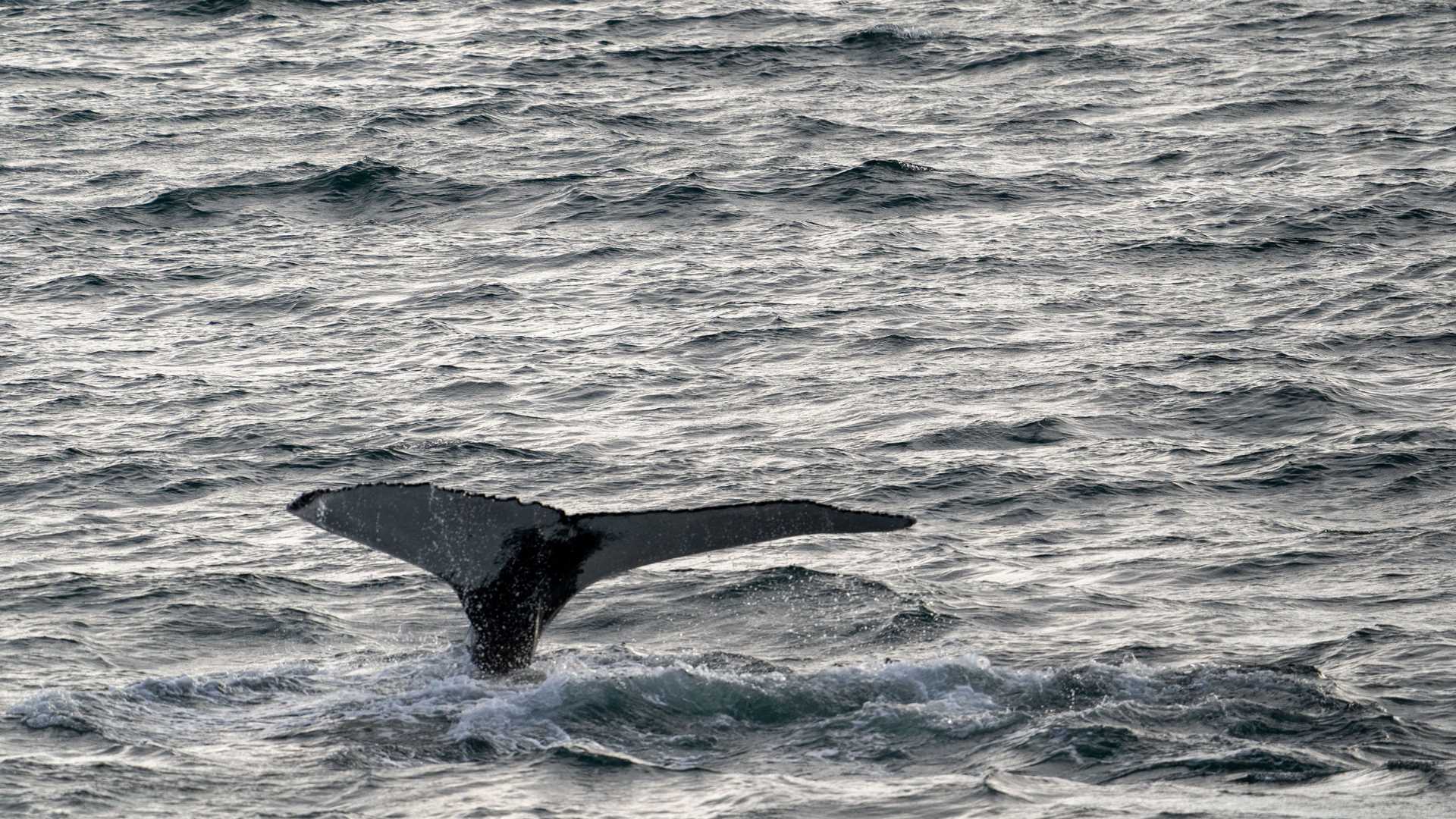 Our wildlife encounters did not stop at birds. As we made our way into the fjord, a line of whale blows immediately became apparent in the distance, caught by the morning light. As we approached, it became clear that we had twenty to thirty humpback whales around us. They happily fed nearby, periodically lifting their tails in the air as they descended into deeper dives. With time to spare following a swift transit overnight, we remained in this area to observe and enjoy the frenzy of activity.