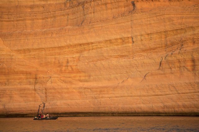 A beautiful sunrise across the peninsular range greeted us as we cruised the San Jose Channel this morning. We spotted a large pod of common dolphins surfing in the wake of our ship. Afterward, we came ashore at Puerto Los Gatos on the mainland of the peninsula. We hiked through the desert arroyo and summited a peak overlooking the bay. As we explored the shoreline of this remote coast, pink rocks of lithified sand dunes served as a striking backdrop for our peaceful morning. Guests snapped triumphant photos while taking in the whole of the arroyo’s ecosystem. During lunch, we repositioned the ship toward Isla San Jose. We spent our last afternoon in the protected waters of Kelly’s Beach. We enjoyed kayaking and SUPing, or stand up paddleboarding. Our small travel group became quite close over these last four days. We encountered a mix of emotions as we recounted our trip and prepared to say goodbye. I hope we will sail again together soon, and from all of us here aboard National Geographic Venture , we wish you safe travels!