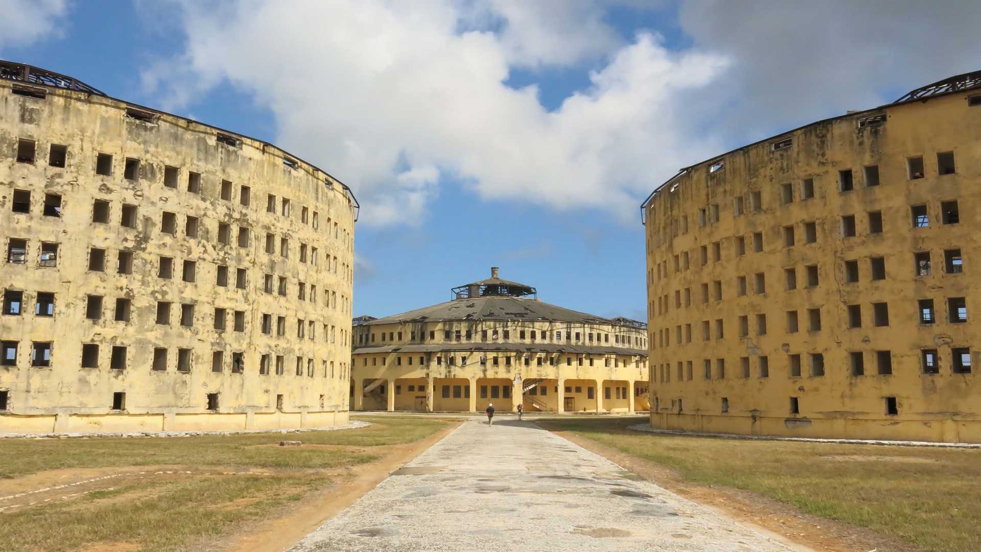 Our first stop was the prison, closed since the 1960s. It had a fascinating layout. Modeled after the Joliet, Illinois, penitentiary, Presidio Modelo housed its inmates in six-story tall circular buildings that had no doors on the cells and where all the prisoners could be watched from one guard tower in the center. The tiny cells were shared by two inmates, some of the tougher cases in Cuba. Fidel Castro and his revolutionaries, being political prisoners, fared much better and were housed in the hospital wing.