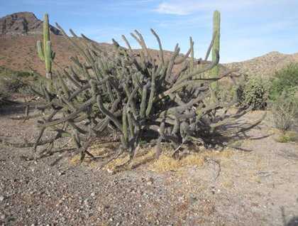 Another beautiful pink dawn received us at Isla Espiritu Santo, as we awoke in the small bay called San Gabriel, one of the many interesting small bays on the western side of this big island. Different activities were undertaken after a sumptuous breakfast. Snorkeling among the many colored small fishes, sea urchins, small corals, and different worms was intense along one of the rocky sides of the bay. Kayaking was also enjoyed, as the waters were very calm. Some of us even saw sting rays swimming speedily away from us. Fantastic animals! One group of good hikers set off across the island to the other side, at a magnificent three mile beach of white sand called Bahia Bonanza. Those of us that stayed on the ship made it to Bahia Bonanza and began our activities there, which included kayaking and hiking into the interior of the island, enjoying the vegetation with one of our naturalists. Among the cacti, a huge sour pitahaya was seen, standing alone in the desert! But the most enjoyable activity was staying on the magnificent wide beach and sunbathing, or watching the youngsters build sand castles.