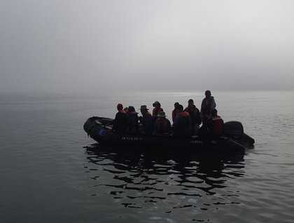 The rising sun merely an incandescent orb in the distance, we awoke to the ethereal sound of nearby gray whales breathing in the distance as a mild fog rolled in to greet our night weary eyes. Various gulls, pelicans, and cormorants flew past, using the cloak of fog to aid in their hunt for food. Eager whale watchers boarded our expedition landing craft for our final outing to seek these magnificent creatures from water level. Spouts broke the glassy surface, aiding us in our early morning search for these leviathans. We were not disappointed, as soon a calf and its mother joined us to frolic amongst us and playfully tease each of our inflatable boats. Soon the sun burned of the early morning fog, and we were greeted by other cow/calf pairs. The time flew by, and by late morning our local pilot had boarded the ship in readiness for our transit back to Magdalena Bay. Departing after carefully negotiating the narrow and shallow channel, the National Geographic Sea Bird continued towards the opening between Isla Magdalena, our home for the past few days, and Isla Santa Margarita.