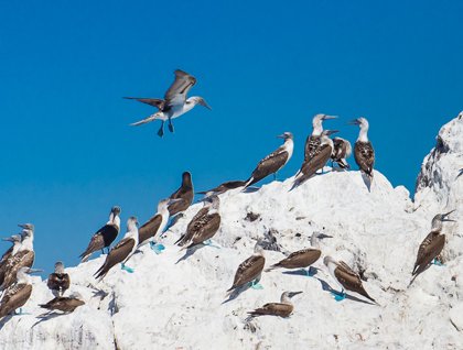 Bird of the day? But of course, the blue-footed booby. For many cruising on the expedition landing craft, these amazing seabirds were life-list birds, not seen before until today cruising along the rocky shoreline.  We also spied the endemic yellow-footed gulls, Heermann’s gulls, oystercatchers, and the always entertaining brown pelicans. Meanwhile, a lone osprey circled overhead.