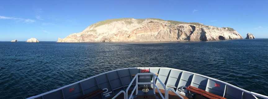 After a mostly calm night at sea we awakened aboard the National Geographic Sea Bird on approach to Isla San Pedro Mártir, a 1,000-foot-high volcanic island decorated with guano and cardón cactuses. The island is home to California sea lions and many seabirds, including brown and blue-footed boobies roosting in the nooks and crannies of outcroppings and ledges, and brown pelicans roosting along the shoreline. Flying above us were yellow-footed gulls, Heermann’s gulls, pelagic cormorants, elegant terns and red-billed tropicbirds. Our morning was dedicated to exploring the perimeter and waters around the island on expedition landing craft.