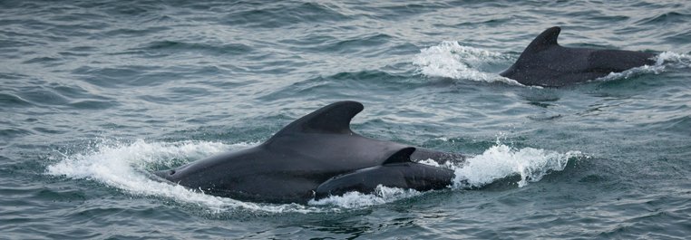 Travelling to our next destination, we had no choice but to slow the ship’s progress in order to take in the eye-popping biomass surrounding us in the water. Countless common dolphins leapt about the boat, singing out and swerving playfully into the wake we created. Cameras in hand, our staff and guests poised themselves to capture the perfect shot, laughing at how often they ended up with only a tail in the frame.