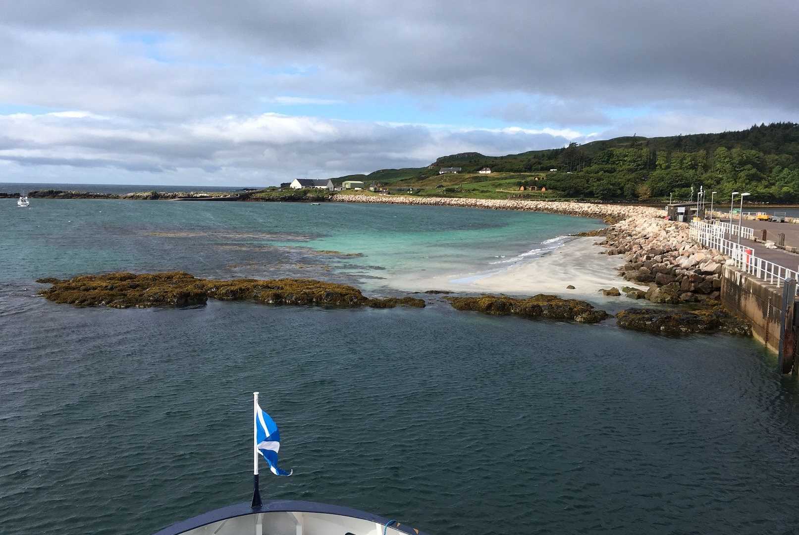 It was pouring rain this morning and Inverie was shrouded in clouds. As we sailed to the Isle of Eigg, the rain ceased but the clouds remained and I thought Eigg had been scrambled. (Hehe.) But a miracle happened and the clouds started to lift and Eigg emerged like a Caribbean jewel – without crowds and without heat, but with stunning colours of the sea, sand and greenery.