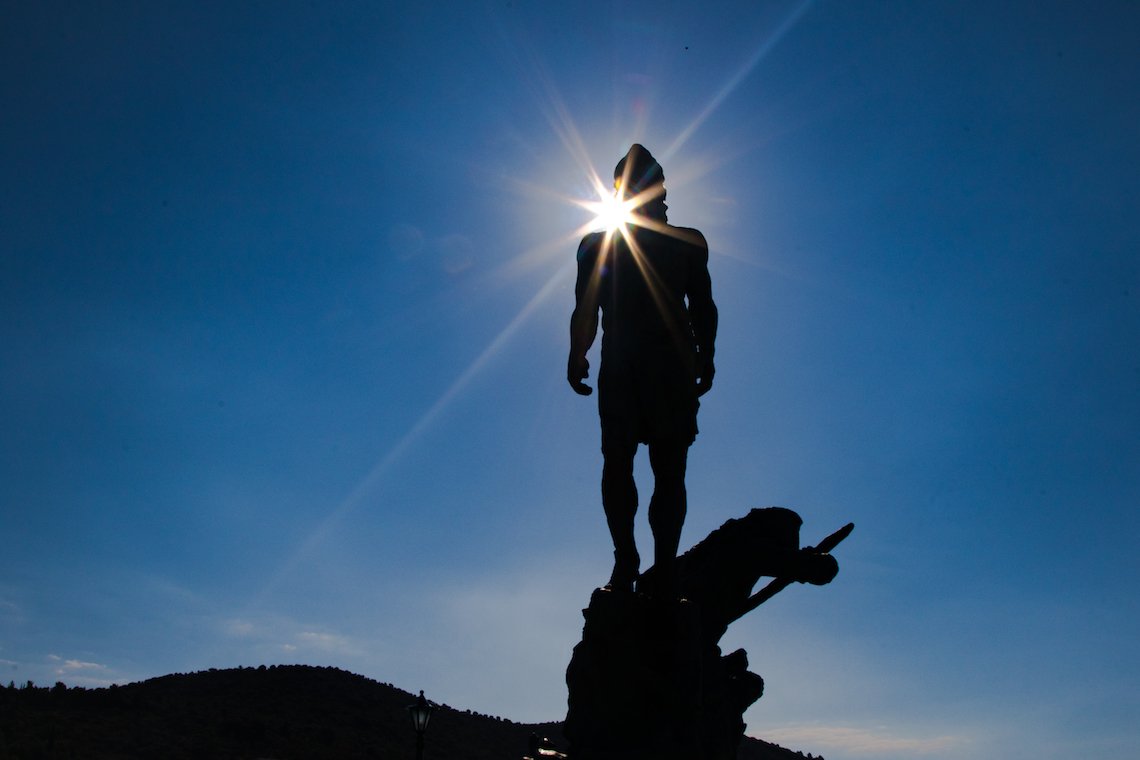 We then drove to the village of Stavros where we were able to see the three coves of Ithaca, as mentioned in The Odyssey. We saw a model copy of a building associated with the ancient history of the island and a modern bust of the famous Odysseus! We enjoyed a nice Greek coffee and pastry while gazing at the view.