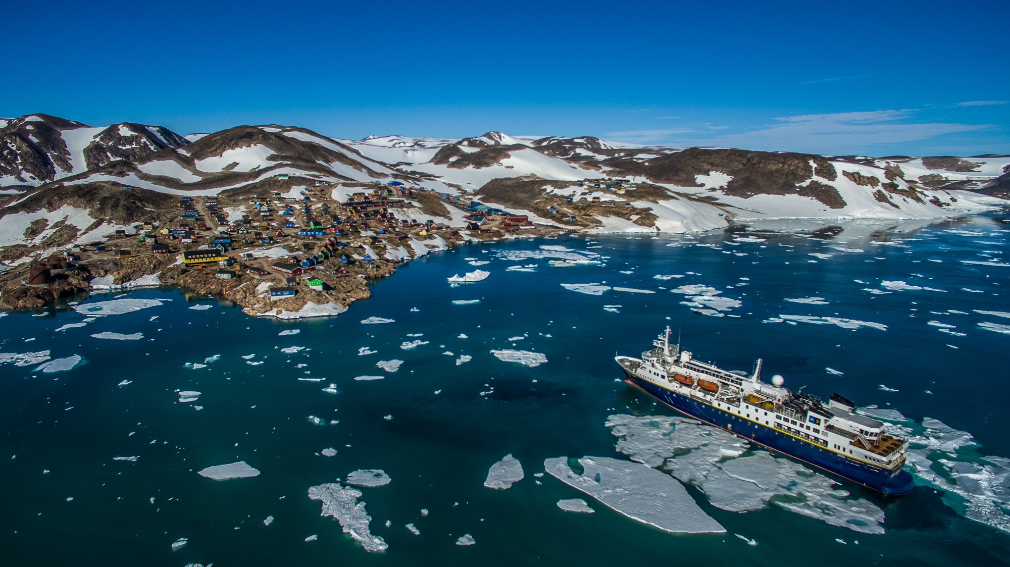 The ship sailed out of the fog and into beautiful clear skies just as Adam’s presentation ended so the plan was quickly announced:  We would spend the afternoon visiting a remote Inuit village called Ittoqqortoormiit, in Scoresbysund on Greenland’s southeast coast.