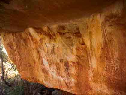 Our morning explorations took us to Jar Island to visit several wonderful galleries of the style of rock art called Bradshaw or Gwion Gwion. We hiked a short distance inland on an easy trail and then threaded our way among sets of huge boulders, clambering over smaller rocks and roots to arrive at shady openings where ancient figures of men and animals surrounded us. Gwion Gwion art evolved considerably over the long period during which it was created and we saw many beautiful examples of several different styles, including the oldest “tassled” figures, the “clothes-peg” figures – named for the resemblance of the body forms to old wooden clothes pegs – and more recent illustrations of fish, crabs, echidnas and other animals that are perhaps best described as menus. Cristiana, Mark and Brent described their forms to us, pointing out many that were hidden in the shadows or under overhanging rocks and encouraging us to speculate on their significance. No one today fully understands Gwion Gwion art, but we felt a strong connection to the lives of the people who lived here and touched these very boulders so long ago, leaving beautiful and mysterious stories for us to contemplate.