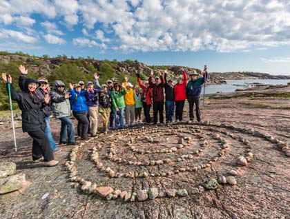 With a perfect combination of clear skies and calm seas, one of these tiny islands was chosen for an expedition stop. Less than one square mile in area, Källskär serves as a summer retreat for a few families normally resident in more urban surroundings and is dotted with saunas and gazebos, including the summer cabin of writer and illustrator Tove Jansson. There is also a more substantial house built by the Swedish Baron Göran Åkerhelm, who created an exotic garden by planting a wind break to create a small area of micro-climate. This resultant little glimpse of paradise we were privileged to share as we strolled the grassy paths of a car-free island, with wild strawberries, raspberries and red currants setting their fruits, rowan, ash and alder trees in full leaf and great expanses of pink granite showing signs of striation from the last retreat of the ice caps. It was as pleasant an expedition stop as we could have hoped for, offering the perfect chance to take a shot of Thoreau’s “tonic of wildness.”