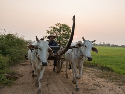 A Cambodian sunrise comes on soft like a gentle tap on the shoulder. Transferring from the MV Jahan to the river’s edge we embraced the living history that is the Mekong way of life. One by one, guests climbed aboard ox-pulled carts (yes, I said ox carts!) for a 2km journey to Kampong Tralach Village.