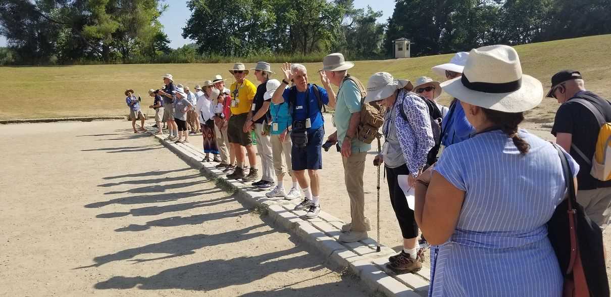 After lunch on the Lido Deck, we docked at Katakolon and prepared for our afternoon excursion to the ancient site of Olympia. The weather was hot and the sun bright, but ample shade and an occasional breeze enabled us to enjoy our trip nevertheless. We wandered the majestic site and marveled at the remains of the ancient temples dedicated to Zeus and Hera as the scent of pine filled the summer air. We also explored the areas where the Olympic athletes would train and compete, including the original marble starting blocks in the ancient stadium. We then made our way to the museum, where we admired the monumental pediment sculpture from the temple of Zeus as well as the stunning Hermes sculpture attributed to Praxiteles. We then headed back to the ship where we enjoyed a Greek barbecue buffet on the Lido Deck, complete with suckling pig, tzatziki, and plenty of ouzo—a fitting end to our last full day in Greece.