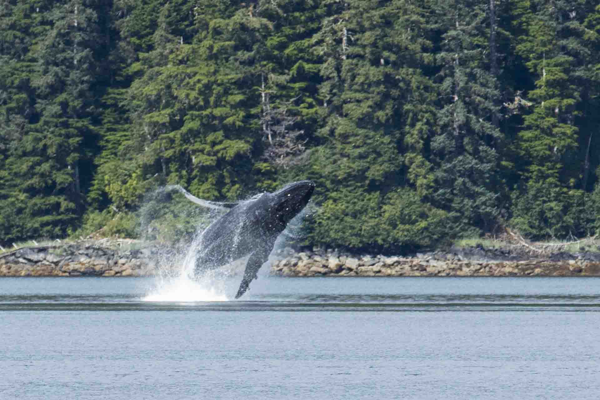 After cruising through the night, National Geographic Sea Lion explorers awoke in the calm waters of beautiful Kelp Bay. Several guest explorers bushwhacked through the Alaskan blueberry, huckleberry and Sitka alder to explore an old growth forest dotted with 200-300 year old Sitka spruce and western hemlocks. Sphagnum moss blanketed the spongy ground with numerous species of mushrooms passively turning the dead forest into the nutrients needed to support the emerging seedlings of a diverse understory. With great effort guest explorers slogged their way to interior wetlands and muskegs to witness the plant diversity of one of Alaska’s most common biomes. Meanwhile, other explorers ventured out in kayaks to watch sea otters and harbor seals rollick about Kelp Bay. Once the early morning explorers traded places with the early kayakers, and all seemed to be enjoying pleasant walks and paddles when suddenly a loud noise rang out—or did it? Those in kayaks were pleasantly surprised to see a humpback whale completely breach and then slam the water with percussive force. Hikers were baffled by the “bang”; however, all quickly preceded to the intertidal zone to witness either the 2nd or 3rd humpback breach. Expedition landing craft riders were fortunate to trail the humpback from the 100 yard distance mandated by the Marine Mammal Protection Act (MMPA). This humpback continued to slap the water with its fins, perhaps playing, perhaps jarring krill that it then captured while feeding.