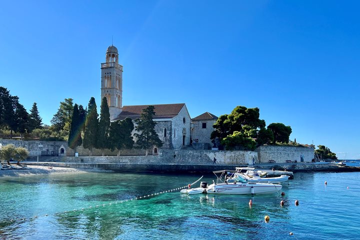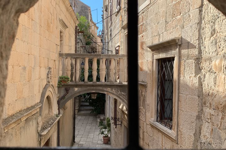 The captain ordered sails to be taken down later in the morning as the ship still had a distance to go to reach Korcula. Guests enjoyed a varied and tasty lunch on deck followed by siesta for many. Around 3:00 later that afternoon, the ship arrived at its anchor position in the channel between the island of Korcula and the Peljisac Peninsula. The ship’s speedy Zodiacs transported us to the quay of the charming walled town of Korcula where we proceeded on a walking tour. Along the way, we visited the Icon Museum, located in the meeting room and adjacent chapel for one of the town’s brotherhoods dating back to medieval times. We viewed the eclectic items and artwork of the cathedral’s treasury and the Cathedral of Saint Mark itself, with its memorable entrance sculpture and fantastical gargoyle ornamentation far above the little square. We finished the walking tour with a short history of Korcula’s famous son, Marco Polo. Guests then had some leisure time, and many guests headed to enjoy the view from a café overlooking the sea.