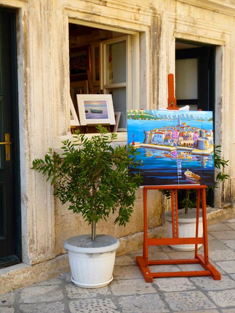 The town of Kortcula is a walled Venetian city on a small promontory on the southeastern tip of the island facing the Peljesac Peninsula. The stiff winds that kept the flags atop the city gates aloft provided a welcome breeze for the guests who went ashore for an afternoon walking tour. As we followed our guides through the narrow limestone paved streets, stopping to pet somnolent cats and take photographs of the verdant flower boxes and medieval coats-of-arms above doorways, one almost wanted to pinch oneself to see if this magical setting was real!