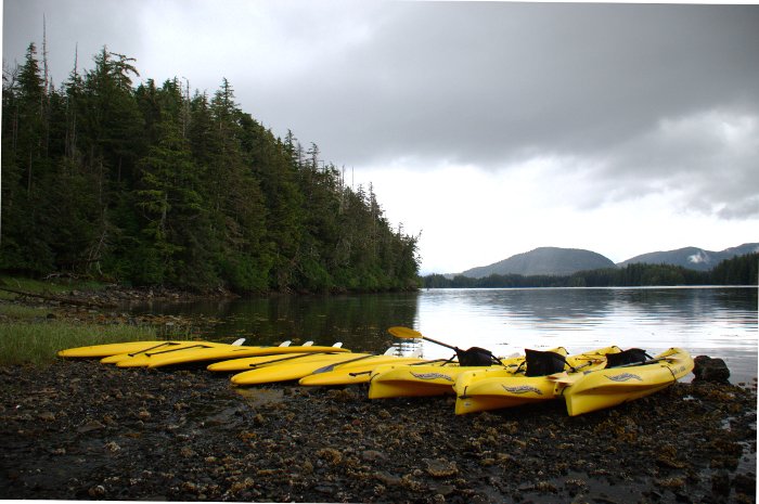 We woke early to a gently rolling swell and clouds over the Gulf of Alaska as we made our way down the outer coast to Salisbury Sound. We watched from the bow of National Geographic Venture as members of the salmon fleet left their anchorages bound for the Fairweather fishing grounds. We were headed to Krestof Sound, a body of water protected from prevailing winds to the northwest of Sitka in Southeast Alaska, and our destination for activities on this rainy afternoon. We boarded kayaks, bushwacked through the understory of a mature forest, and rode Zodiacs through quiet lagoons and coves. The rain, pelting at times, was nevertheless a relief for the temperate rainforest. We watched quietly as deer came out to graze along the back-beach areas of the sound, and a family of mergansers took a swim in the placid waters. Today was a quiet and relaxing end to our adventures, and we look forward to our final day in Sitka.