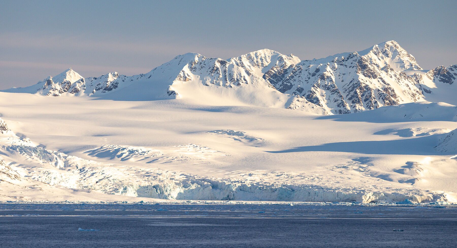 On our first day in the land of the midnight sun, we awoke to the breathtaking scenery of Krossfjorden on our way to see the Lilliehook Glacier. The sun was out and even the water was calm, creating rippling reflections of the surrounding mountains. The staff scanned the landscape for wildlife, and we saw quite a few Svalbard reindeer, their tracks meandering around the snowy bowls.
