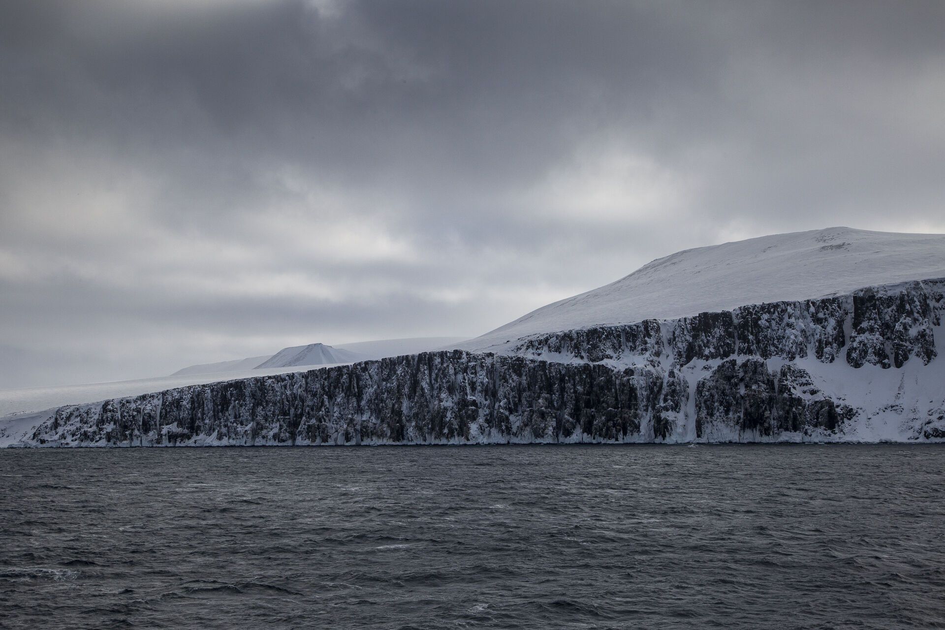 After dinner, we cruised Magdalenefjord. By that time, it had started snowing and the visibility was somewhat reduced.