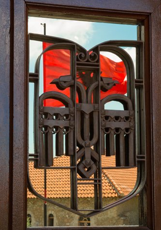 Our first stop was the ancient capital of Kruje. One museum is dedicated to George Kastrioti Skanderbeg, an internationally recognized general who fought off the Ottoman Empire for 26 years. This museum was designed by Hozha’s daughter and built in 1981 specifically for the indoctrination of the Albanian people into the grand nationalist narrative of Albania. This year, for the first time, the placards explaining the different exhibits had been translated into English in recognition of the fact that foreigners are now beginning to visit this once forbidden realm. Our guide Claud, who was part of the translation team, ably interpreted the museum both in its historical and contemporary contexts.