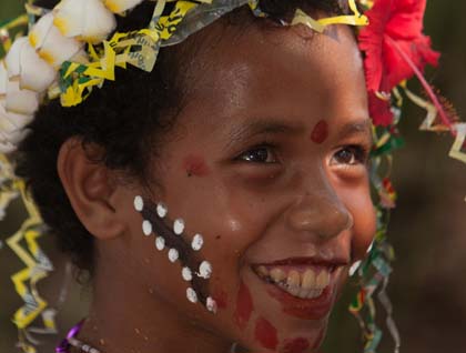 This morning the National Geographic Orion meandered cheerfully amidst the Trobriand Islands, made famous worldwide by the anthropologist Bronislaw Malinowski when he dubbed them “The Islands of Love.”  His work illuminated the intriguing courtships of the islanders in this matrilineal society in which women at times aggressively pursued their male interests and the act of lovemaking was seen as unconnected to childbearing. Yet while the villagers of Kuiyawa’s notions of love may have changed somewhat through time, their greeting to visitors remains as lovely as ever with cheerful men, women, and children bearing colorful frangipani leis welcoming us warmly.