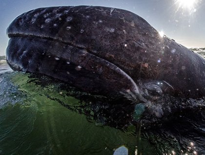 With a series of low, bushy blows softly lit by golden morning light a collective sigh of relief could be felt throughout the ship this morning. The whales are here. The shallow, protected waters of Magdalena Bay still harbor a classic whale and a classic landscape. We’re reaching the end of this whale’s breeding cycle and many have left the shelter of Baja California’s sandy lagoons and began their long, arduous journey against the California Current, north through busy shipping lanes, past killer whale ambushes and fisherman’s nets to their Arctic feeding grounds. Today we have been extremely fortunate to share a sunny day with the friendly whales of Baja California.