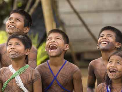 The Darien is home to the Embera people and in order to visit them we boarded several local boats and headed to La Chunga village. La Chunga is a small community of about 250 souls and numerous small kids and several adults were at the dock to greet us, all dressed with their traditional loincloths and colorful skirts. The Embera love to decorate their faces and bodies with designs painted using vegetable inks that last for four or five days and practically everyone in town was a living art gallery. They showed us many examples of their culture, including some dances and ceremonies, music, and clothing. They offered for sale many beautiful handicrafts and we all purchased amazing baskets, wooden sculptures or masks of great beauty and made with extraordinary skill. Laughter was constantly heard and it was hard to tell which group of people was more interested in the other; the kids were particularly fascinated by Kike’s drone and the expression in their faces when they first saw the thing flying up was priceless!