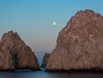 The full moon slipped lower in the inky dawn sky as we approached the rugged rocks of Land’s End near Cabo San Lucas. As frigatebirds soared overhead, the rising sun began to bring out the highlights of ruddy tones in these craggy cliffs. Captain Kay brought the ship’s bow ever closer towards the famous arch, and the bark of sea lions echoing off the rocky walls surrounded us in a lovely background soundtrack. It was a stunning start to a full day.