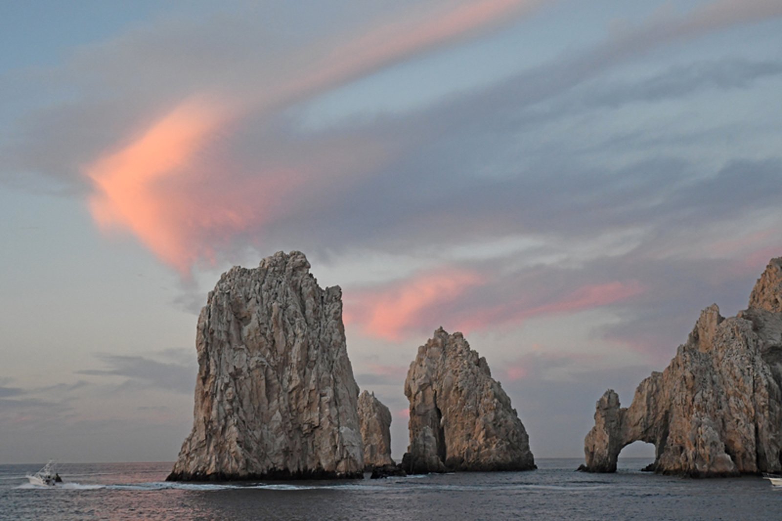 We rounded the cape before dawn to a sky full of misty clouds and soft pink light. Fishing boats were starting their journey from Cabo San Lucas to the south, but the base of the towering granite rocks of Land’s End still stood alone and not yet awash in the wake waves of passersby. Soon we were on our way to San José del Cabo to walk through parts of town and look at birds in the estero that runs the last mile or so before its water soaks the ocean beach. Watching humpback whales would fill our warm afternoon.