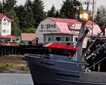 From the harbor we walked out across the dock and waterfront where local boys were fishing and work at a fish processing plant was in full swing, with great bins of fish fillets ready to freeze and export. On through the town we walked as the citizens greeted us warmly, surprised to find us in their small community. We proceeded out onto the tundra and passed farms where friendly and curious Icelandic horses also greeted us.