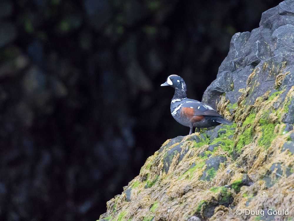 Our day started with a quick rain shower while the Zodiacs were lowered into the sea near the Langanes peninsula in northeast Iceland. The first guests on the water were greeted by a rainbow but before we knew it, the rain had receded and the boats proceeded across glassy water to the black basalt cliffs bordering the bay. The cliffs themselves showed a great range of features including columns, caves, and deep cavities. Some covered ledges looked like the crypts of a medieval cathedral, but with puffins standing at the entrance rather than the icons of saints! Fulmars sailed by with their characteristic flap-flap-flap then glider flight, while black-legged kittiwakes kept aloft with buoyant wing strokes.