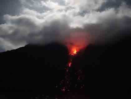 Getting woken up in the wee hours of the morning is not the greatest. However, wasn’t it absolutely worth it?! Dr. Lawrence Blair had told us that the volcano on Pulau Komba, which was on our way from East Timor to the island of Flores, would most likely be active and it sure was. Captain Lyubo, always happy to accommodate unplanned expedition stops, slowed down the ship just after midnight and we got to experience an absolutely unforgettable nature spectacle. A bright moon lit the clouds above the mountain. We could hear rumbling noises from deep within the volcano. The earth was spitting fire. Chunks of lava were tumbling down the side of the mountain and disappeared in a black sea. One eruption followed the next and it was difficult to pull ourselves away. Though, at some point it was time to get moving again and also to get some rest before arriving at our first destination in Indonesia that same morning.