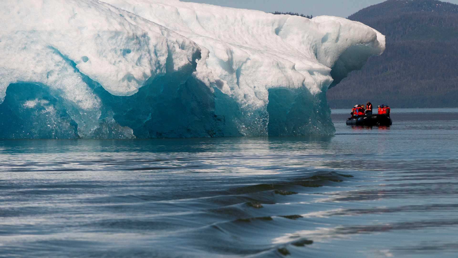 The National Geographic Quest spent the morning on Zodiac cruises around LeConte Bay, which is filled with icebergs that calved from the nearby LeConte Glacier.