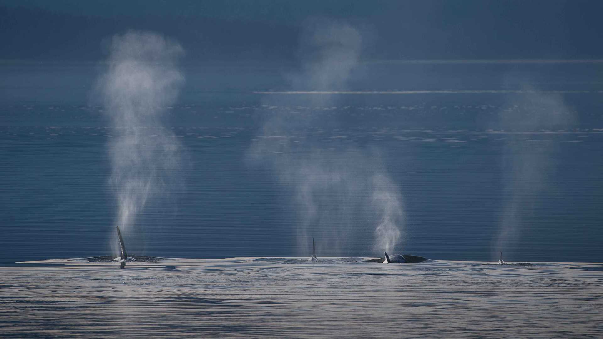 It was a slow morning as our guests were quietly moving in and out of the lounge, gathering their morning coffee and heading back to their rooms before the day would officially begin. Then, in a moment, everything changed. Just moments before the actual wake-up call, a slightly earlier wake –up call came over the loudspeakers. Killer whales have been spotted ahead of the ship. As we all headed for the bow of the ship, the plumes of whale spouts could be seen in the distance. The early morning light was such that it was hard to see where the sea ended and the sky began. The blue monochrome made the whales and their spouts stand out from the background like a surealist painting which added to mood. Our second morning on board and already we had seen black bear, mountain goats, spectaculer glaciers, and now, killer whales. We watched for about a half hour when our expedition leader made the announcement that breakfast would be delayed to afford us the opportunity to watch the whales a little longer, something that we, who were watching whales already had decided.