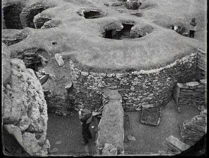 There is more tangible evidence of the past as well, as exemplified by our visit to Jarlshof, a fascinating, multi-layered archeological site. On this small hill near the sea, can be found the ruins of a 16th century manor house that once belonged to the illegitimate brother of Mary Queen of Scots. Long after it had been abandoned in the 1700s, the dunes beneath the manor were eroded by the regular storms, and in the late 1880s mysterious stone structures were revealed. It soon became apparent that the earth beneath this manor contained buildings that dated back over 4,000 years. The unique feature of Jarslhof is the way in which successive layers reveal different eras of history. The further down you dig, the deeper back in time you go, from the 16th century manor to a 9th century Viking farmstead, to iron age wheelhouses and ultimately bronze age structures that date back to 2,500 B.C. It's an awe-inspiring site, although the fierce winds and sideways rain that pelted us as we walked through the site did not allow for much lingering. We crowded around our guide, huddled in our raingear like multi-colored penguins sheltering from Arctic winds, to hear about all that we have learned from Jarlshof as well as the mysteries and questions it raises.