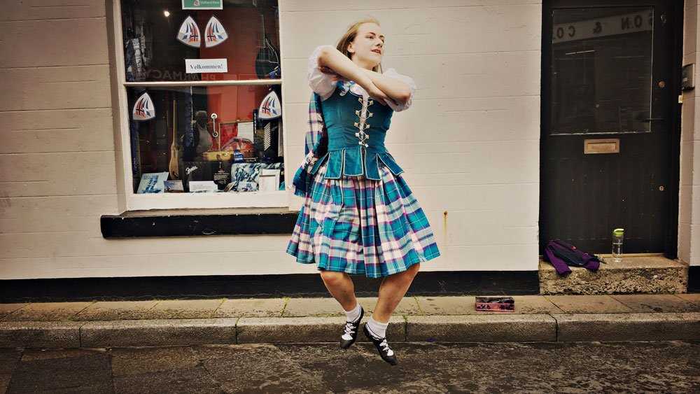 It was a slightly overcast day in Lerwick, and that, combined with the old stone buildings that line its streets, gave the town a grey pallor. A young girl dressed in a bright blue kilt provided a spark of color as she performed Highland dances in a square along to a recording of bagpipes. While neither this style of competitive dance nor the Highland bagpipes are typical to Shetland, both have become recognized expressions of Scottish culture around the world. In Shetland, country dances are more common. A relative of American square dances, groups spin and change partners to standard steps. The folk music of the Shetland Islands is usually played on fiddles with a Nordic style that reflects the Norwegian heritage of these islands.