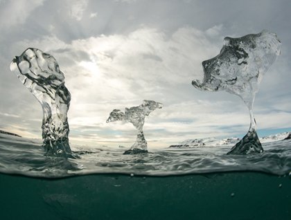 A slow approach to this western stretch of the Svalbard Archipelago bought us time to cover the logistics of an expedition to the high arctic: polar bear safety, Zodiac operations, the nuances of kayaking in cold waters, etc.  As our informational morning progressed so did we, in the direction of a large fjord known as Krossfjorden. Just before the lunch hour we reached its northern reaches, coming face to face with an imposing ice barrier that feeds Krossfjorden a healthy supply of ice throughout the year. Lilliehöökbreen is a large tidewater glacier that is fed by catchment basins in the high mountains surrounding the northern end of the fjord. Pouring down in all directions like an amphitheater of ice our captain positioned us right along its frozen edge for a display of natural power not easily matched. Breaking off along a weak point in the ice wall a 70 foot tall, apartment sized piece of ice was born into its new role as “iceberg” before our very eyes. This adjustment triggered a domino effect of glacial collapse that left us rocking in its wake.