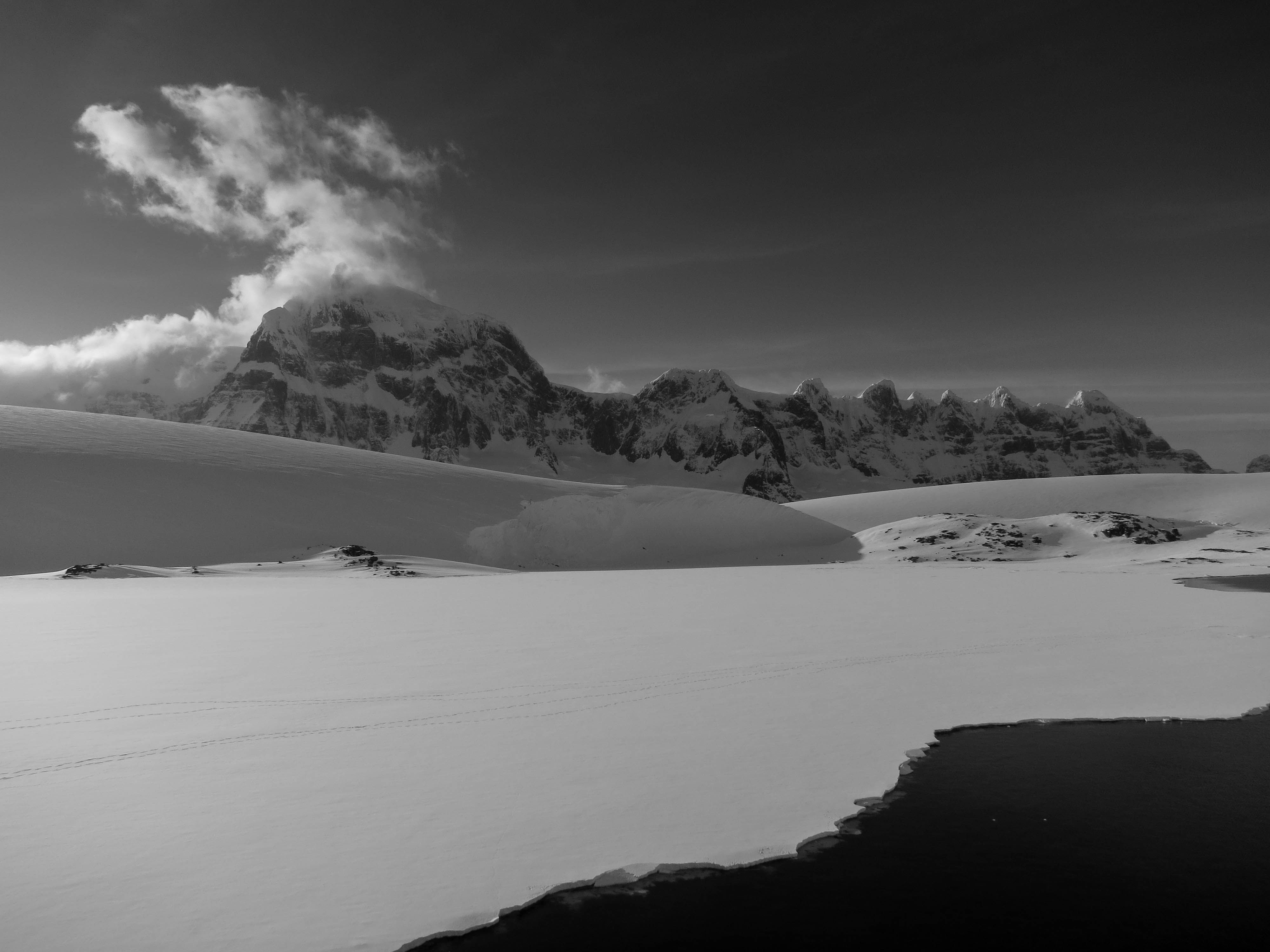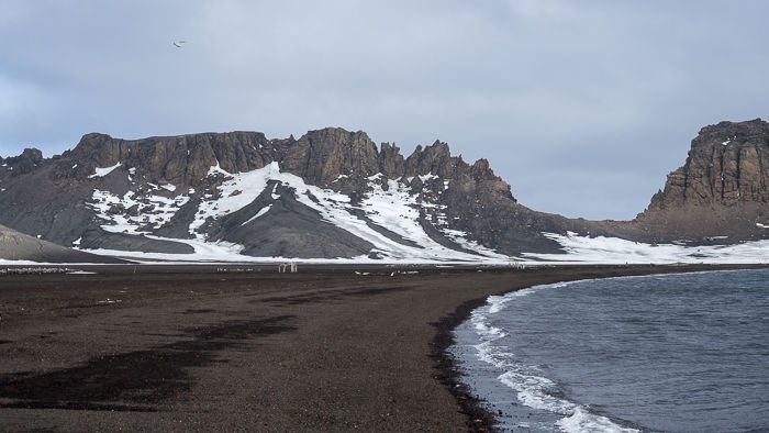 We have had very changeable light. Upon arrival, the light was fantastic like in a painting, the sky partly sunny, and the air was dry. Once we were out, it was snowing, and the visibility worsened a lot. From the Zodiac, we have spotted orcas, a minke whale, as well as Adélie and gentoo penguins. Of course, many icebergs of all sizes and shapes were seen along the way. During the afternoon, we visited the whaling station at Deception Island. Some did a walk along the beach, others were more interested in the buildings.