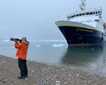 We spent the morning sailing across the last of the Drake Passage in anticipation of our arrival to the South Shetland Islands. Naturalists and guests spent a good part of the early morning eagerly looking for wildlife from the bridge. We got lucky with sightings of hourglass dolphins, royal albatrosses and sooty shearwaters. Around midmorning, naturalist Steve offered a presentation on the seabirds of the Southern Ocean. Outside the lounge’s windows, large black-browed albatrosses demonstrated their gliding flight technique.