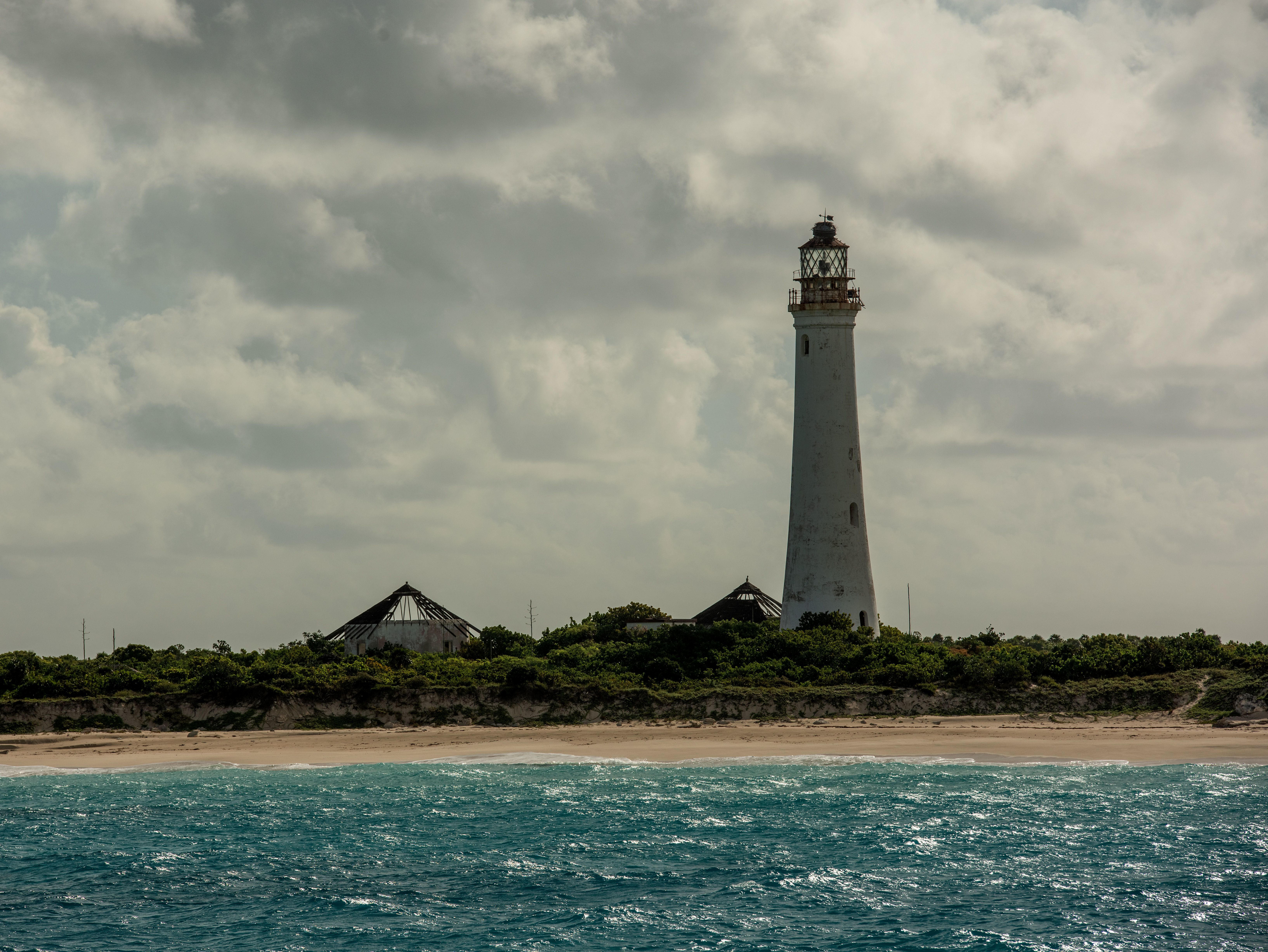After another calm night at anchor on the Exuma Banks, we awoke to a light breeze and gentle seas. Wind and tide dictate all that we do, showing how intimately tied the Bahamian Islands are to the weather. As the sun broke through the distant cumulus clouds, the waters shone with a full spectrum of blues. Most everywhere we have been on this voyage has been in shallow waters, and we have the delight of seeing the seafloor during our travels. This gives us the privilege of peeking in on the lives of the fish, nurse sharks, coral, and other marine animals that are often obfuscated by more turbid waters. The weather obliging us thus far, it looked like a great day ahead. In the morning, we set out via kayak and Zodiac to explore a cut going through the whole of Shroud Cay. This winding channel drew us in with its beautiful waters, urging us further as its serpentine curves dictated our route. Red mangroves lined the sides as far as the eye could see. Yellow warblers sang from their branches, green sea turtles darted below us, and a lemon shark swam by in the shallow waters. Approaching the windward side of the island, we encountered the “washing machine,” a tidal cut where the channel meets Exuma Sound. Many of us hopped in the water, floating down this strong current before it deposited us safely on a sandbar. It was a delight to experience this natural playground and to cool off after a morning in the sun. In the afternoon, we spent time enjoying the pristine white sandy beaches offered by the Exumas Land and Sea Park. It was pleasant to relax, to take in the scenery and landscape around us, and to get lost in the gorgeous blue waters. Some of us took a walk up the eastside of the island as a few white-tailed tropicbirds circled overhead. These seabirds use small crevices in the limestone to nest, a feature that is plentiful in the Bahamas. From Camp Driftwood, we took in a view of the surrounding cays. We spotted Norman’s Cay, the site of a drug smuggling operation in the 70s and 80s. The DEA monitored the situation from Camp Driftwood. The Bahamas has a rich and diverse cultural history on top of its