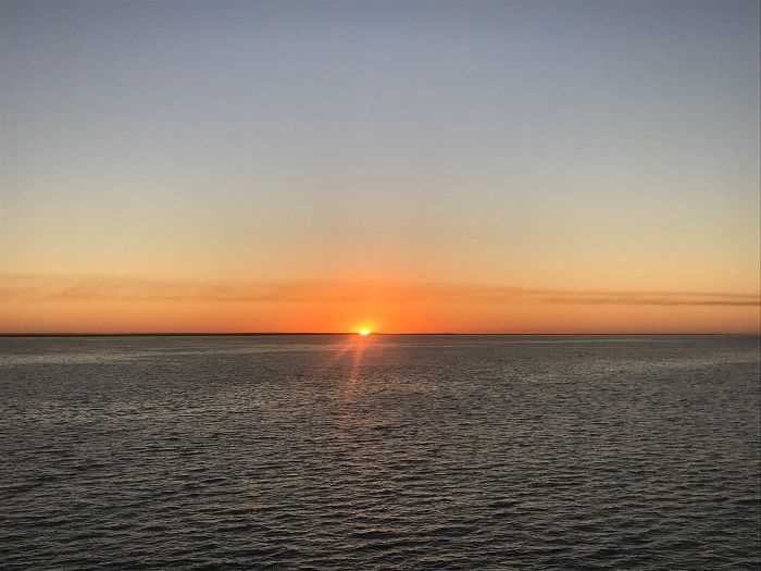 This morning we pulled into Porto San Carlos 20 minutes after an almost perfect sunrise. The sky was azure blue, the water flat and green, and the sun was ablaze with reds and oranges, or perhaps they were guava and mango.