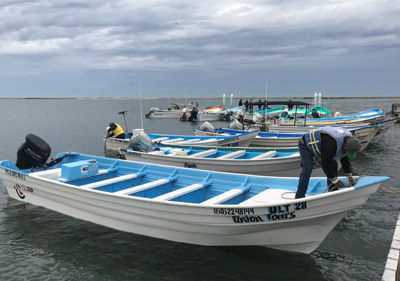 We awoke this morning alongside the dock in San Carlos on the northern bank of Magdalena Bay. Buses awaited to drive us to Lopez Mateos where we could board local pangas – small fiberglass boats that offer excellent views. The pangas would take us along Hull Canal to Boca de Soledad, a narrow inlet to Magdalena Bay where gray whales use these calm waters for their breeding and calving grounds.