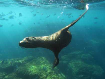 Later in the morning, we had the wonderful opportunity to go snorkeling with the sea lions. The water was refreshing and with good visibility. It took a little while to see the first sea lions, but in a matter of minutes, several of them got really close to us. They seemed to enjoy our presence. Being highly intelligent animals, they are playful and clearly enjoy the interaction that we have with them.