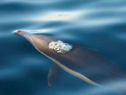 The second full day of our expedition around Baja California started in a glorious way with a beautiful sunrise as National Geographic Sea Bird headed south towards Los Islotes. The eastern horizon glowed with orange and bright red colors, while the western sky turned pink. Just around sunrise we encountered a group of long-beaked common dolphins that swam alongside our ship, many of them with remoras hanging on their side.