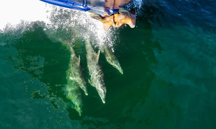 Today we woke up sailing along the picturesque coastline of the Baja peninsula. We had high winds and so while the seas were spicy, spirits were high as we sailed over the ocean. Seeing the waves crashing against the bow is a remarkable sight, and the feeling of exploration was palpable. We had an incredible presentation by our undersea specialist, James Hyde, on the incredibly intricate and fragile topic of plankton. Filled with beautiful videos and a wealth of knowledge, we were moved by the importance of this biodiverse and beautiful part of the dance of the ocean. Closing his presentation, we toasted to an exciting day at sea with bloody marys. One of our bartenders, Derek, served them up in a beautiful style while we lounged and enjoyed the seas. These weeks are so jam-packed with activities that it was a true gift to enjoy some downtime. Our photography instructor, Shayne Sanders, was available in the lounge all day to help with photo transfers and to continue teaching us the tools we have been learning all week to improve our photography skills. This could not have come at a better time, as we were soon treated to a mega pod of common dolphins. To see the ocean alive with dolphins all around the vessel was an unforgettable experience. We all leaned over the bow and watched as dozens of dolphins squeaked and rode the ship’s pressure wave. All this before lunch! We then continued to the entrance of the mouth of Magdalena Bay. We began seeing the blows from gray whales as we entered the calm and protected waters. This was an incredible day that showcased the magic of the Baja coastline.