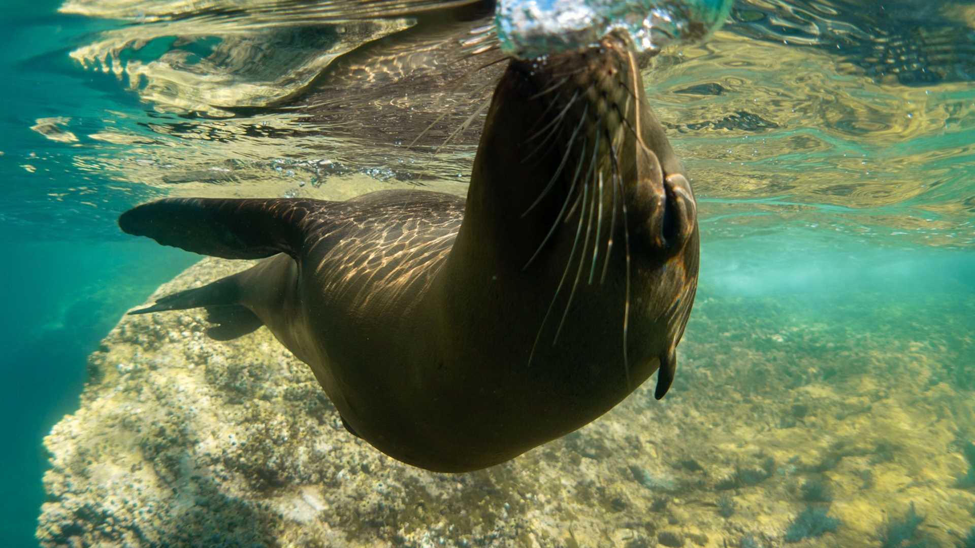 Just below the surface king angelfish and striped grunts swam about, chasing after their breakfast and soon enough the guests of the hour arrived. To be in the same water with a sea lion allows for an experience far different than interacting above surface. Largely inactive on land, they take on new form as acrobats underwater. They pirouette and jut without warning, blowing bubbles, nibbling flipper fins, and spurring plenty of excitement among our guests. The sea lions proved worthy water companions once again