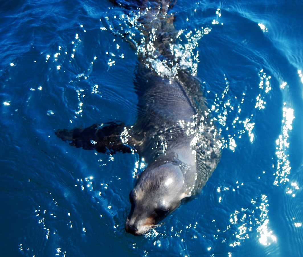 The ship was repositioned just a few miles north in the afternoon and a chance to snorkel was offered. Los Islotes means the islets or small islands. These craggy rock formations are home to many tropical fish as well as California sea lions. These playful marine mammals seem to be fascinated by our inability to swim correctly or at least as they see it. The young animals would routinely swim circles around us in an attempt to get us to speed up our aquatic activities. Once everyone who wanted to get in the water had done so, we had a chance to get into the expedition landing crafts and go back to Los Islotes and photograph the sea lions as well as the roosting birds of the islets such as the magnificent frigate bird, brown pelican, and blue-footed boobies.
