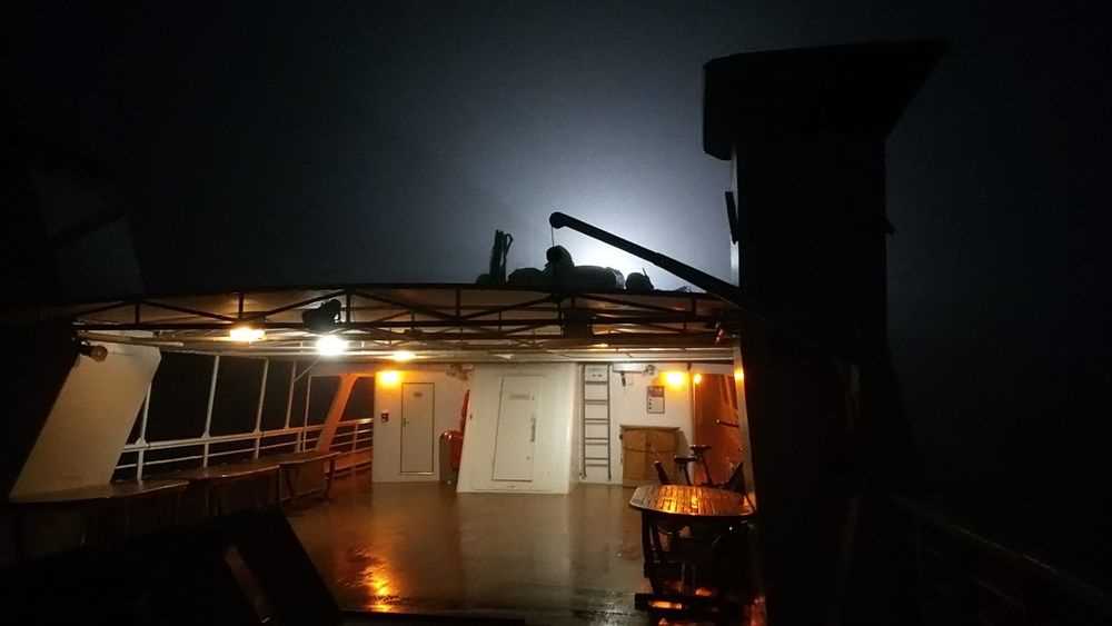 Today, weather conditions seemed not to help us much for our early round of whale watching at Los Títeres. Heavy fog covered the lagoon south from the town of Puerto Adolfo López Mateos off the Magdalena Bay Complex, permitting only a few yards of visibility.