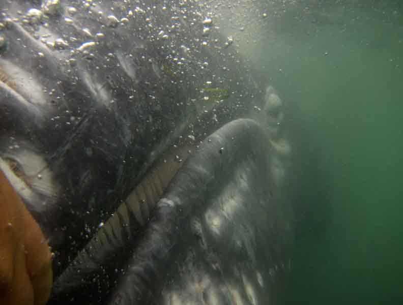 “Two hands, no waiting.” A quote from the day. What does this mean? Well, first I have to explain a little about our time here in Magdalena Bay. We have spent the last two days in the realm of the gray whale. For most of our time, we have been surrounded by whales. Mostly mothers and calves, we have spent hours being amongst them, and seeing the different behaviors. Breaching, traveling, lots of rolling over, and spy hopping were all observed and photographed. But the ultimate, is when the whales become a bit curious.