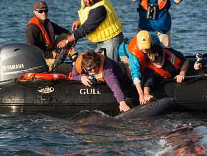 For us it may begin as a novel idea, petting a whale. Then, once the great whale approaches, we understand how small we are. With pause and we reach out, the excitement is indescribable, a hand slowly reaches down into the cool water, and for the first time, we touch a whale. The whole thing may last but a moment, or it may last many minutes, but that is only the physical experience. There is another experience, one felt inside someplace within our being. In those few moments of contact, our lives are changed.